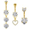 VCMART 3pcs Gold Belly Button Ring Heart Dangle Belly Button Piercing Surgical Steel Belly Navel Rings for Women 14G 10mm