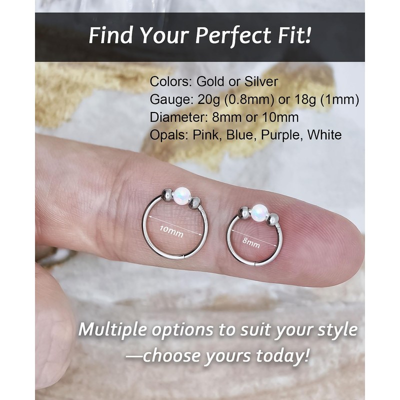 - Package Includes: 1 white opal beaded small hoop and 3 nose studs. The perfect gift for yourself or a loved one.