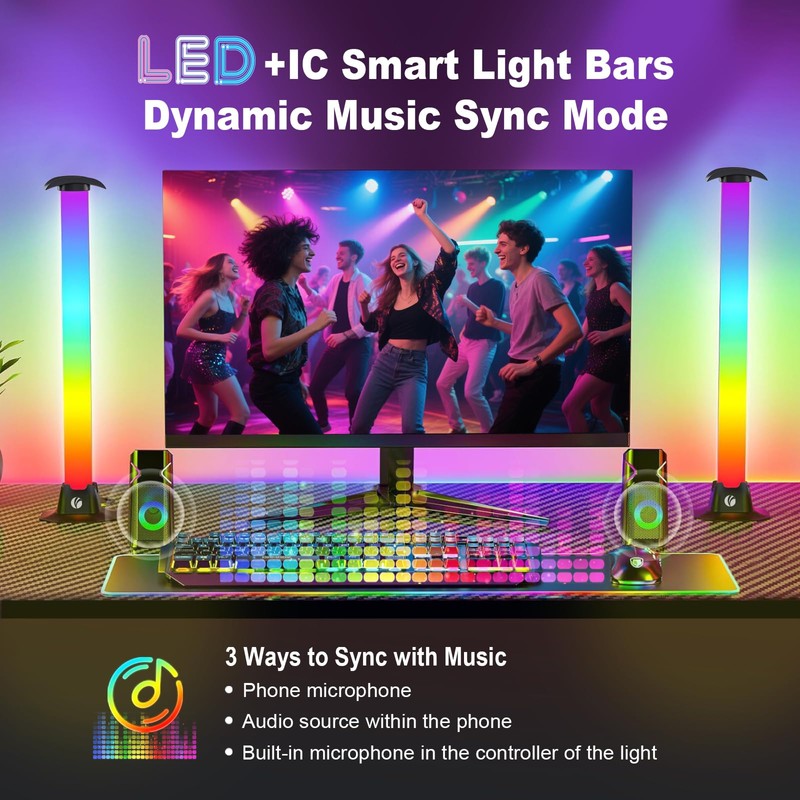 - Syncs With Music: VCOM smart RGB light bar features four music modes, controllable via the app or remote. It dynamically syncs with ambient sound to enhance your party atmosphere. In addition, you can also use the timer function to set the duration of the rgb light, and the soft light will accompany you every beautiful night