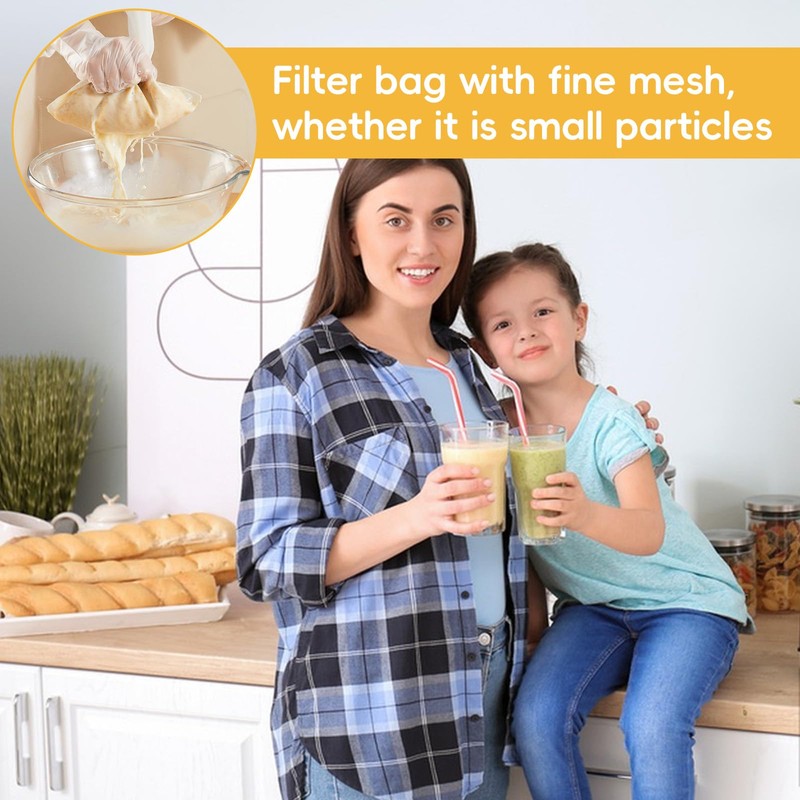 - [Multipurpose Nylon Strainer Bag]:The nut milk bag can be used for filtering soy milk, yogurt, fruit juice, vegetable juice, wine, tea and other drinks. In addition, different types of nut milk such as nut milk, pecan milk, oat milk, etc. can be filtered. And the original taste and nutrients of the food are retained, so you can enjoy the preparation process.