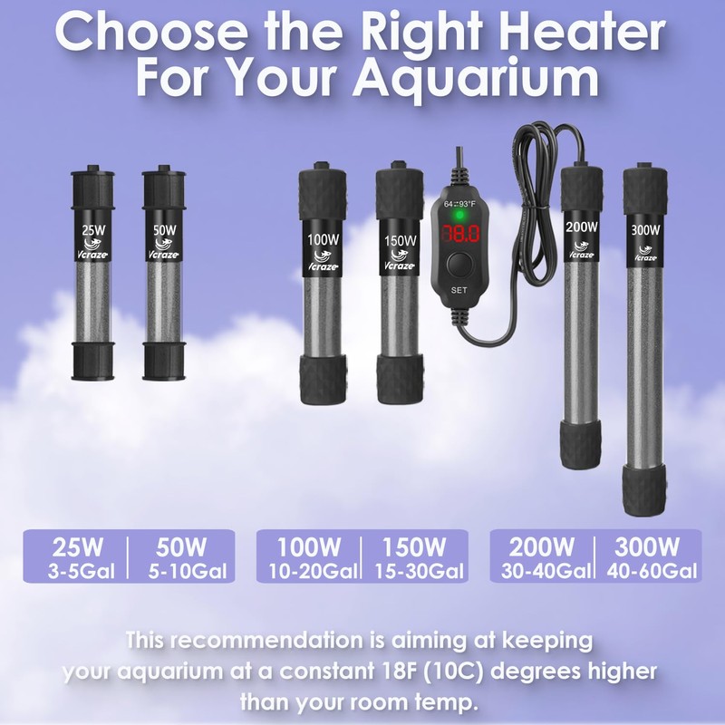 • PRECISE TEMPERATURE CONTROL - Courtesy of cutting-edge inverter technology and integrated chips, this fish tank heater ensures stable temperature control with an impressive accuracy of 1F. That's a huge leap from old-school, knob-controlled heaters. With its user-friendly thermostat displaying current and desired temperatures, operating this heater is a breeze.