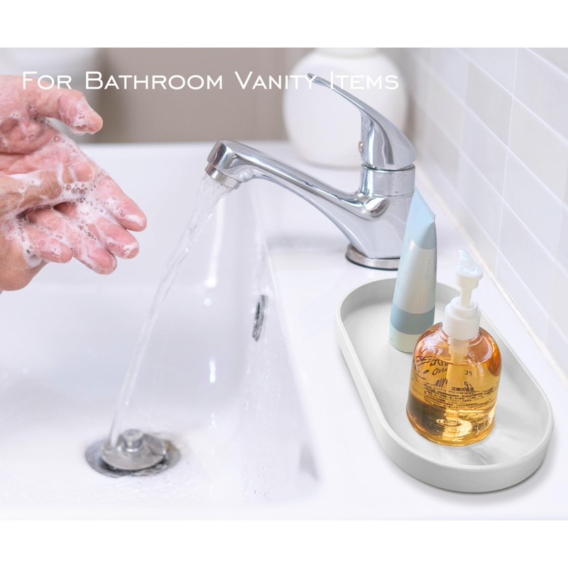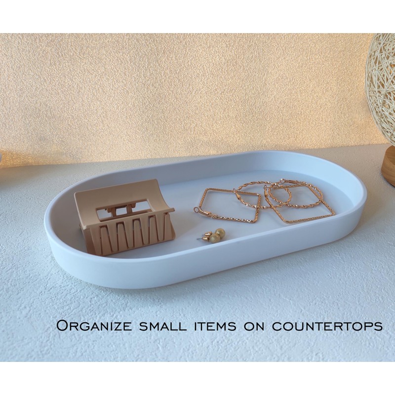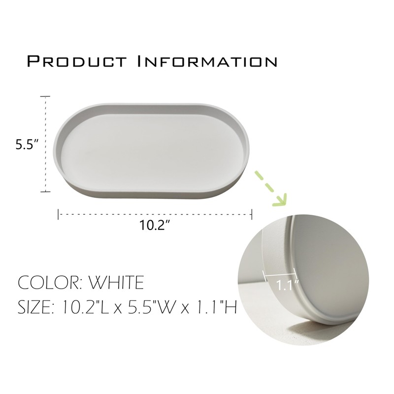 VCREATC White Small Tray (10 inch), Oval Tray for Bathtub Bathroom Vanity Items, Countertop Organizer, Coffee Accessory, Soap, Perfume.