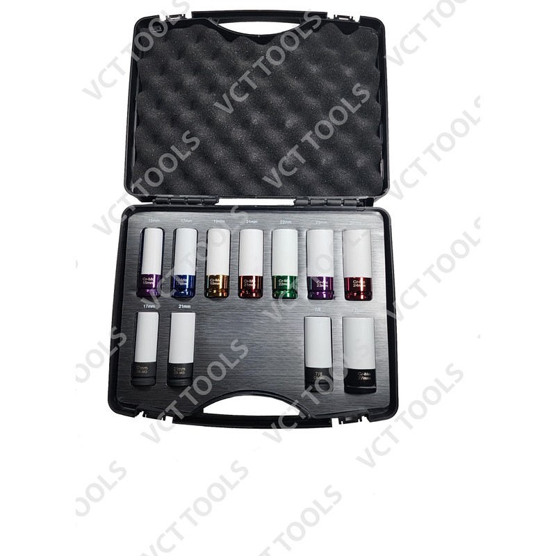 VCT 11pc Metric and SAE Wheel Nut Protector Impact Socket Set, 1/2" Drive, Includes Specialty sockets Compatible with Telsa, Hyundai, Mercedes-Benze