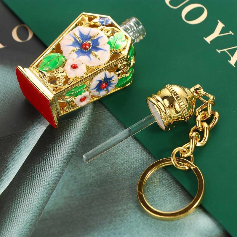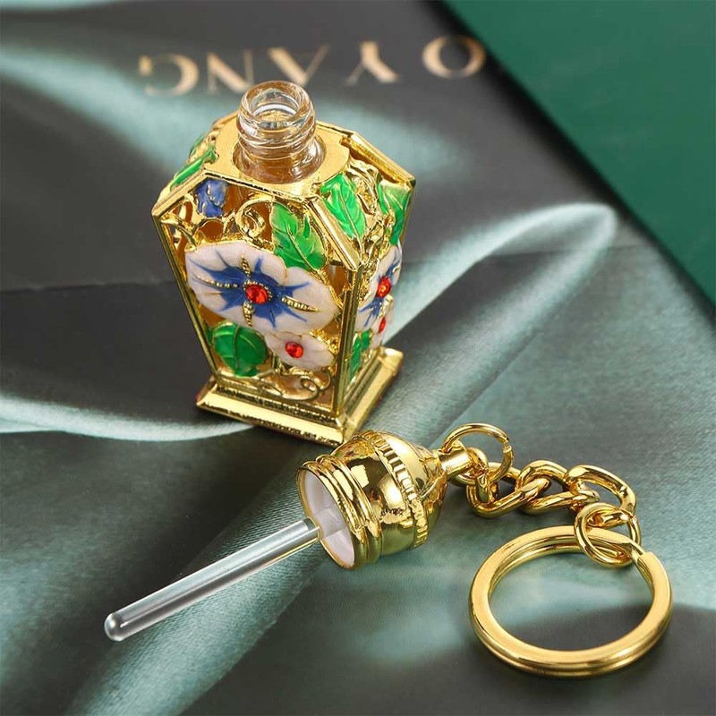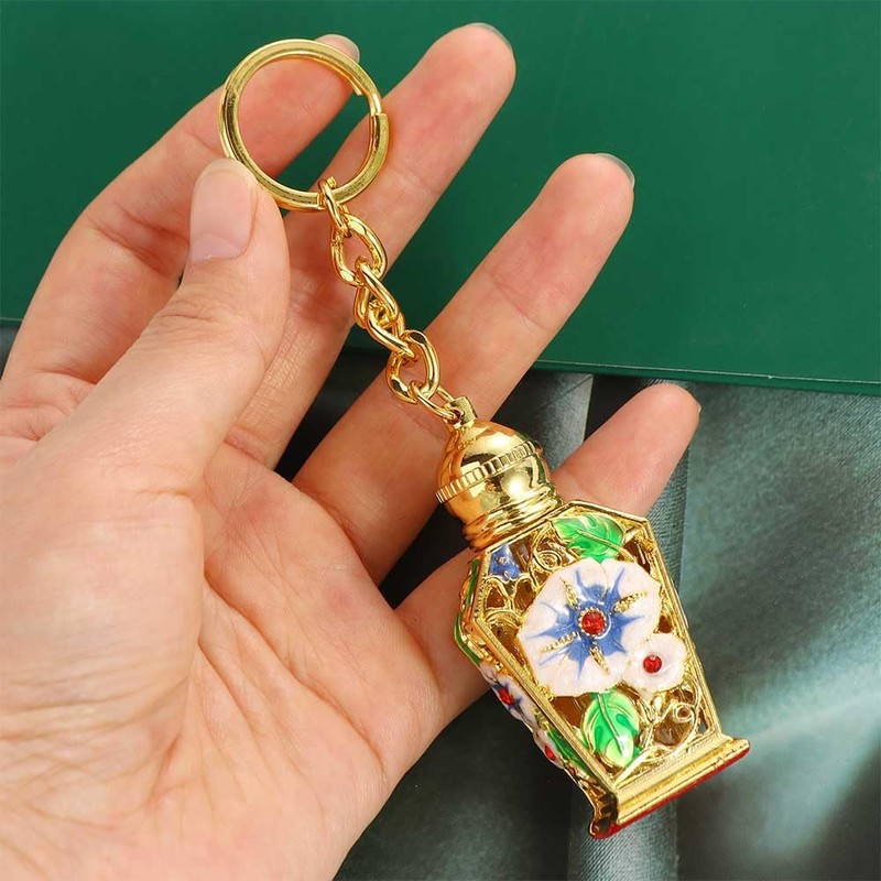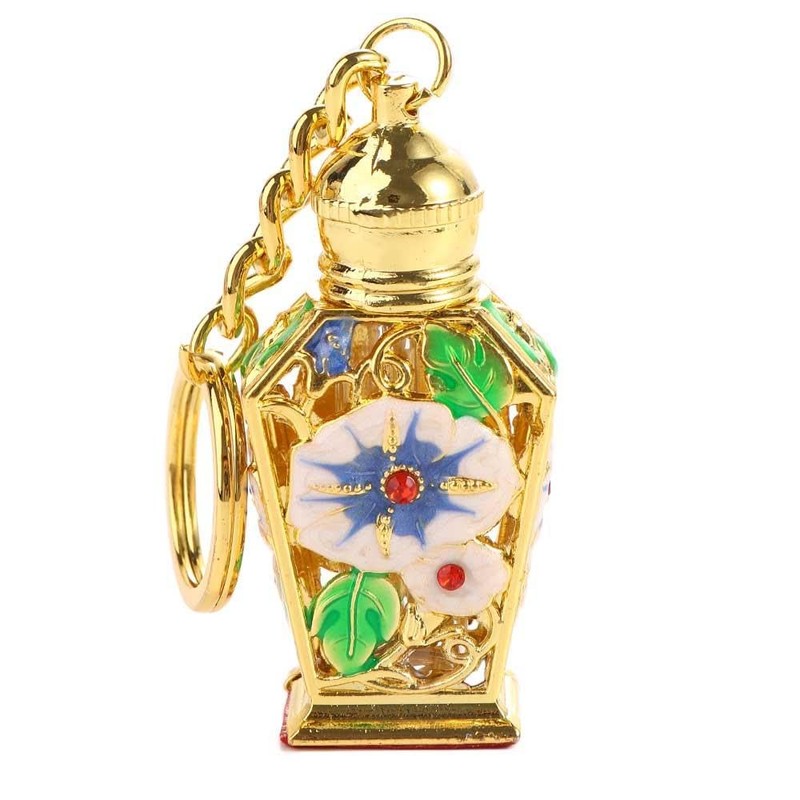 Vctitil 1pcs Arabic Style Perfume Bottles Metal Glass Essential Oil Drip Bottle Pendant Key Chain Refillable Bottle Empty Cosmetic Container