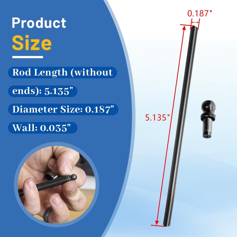 - Size:0.187 Diameter; Rod Length (without ends): 5.135"; Wall: 0.035"
