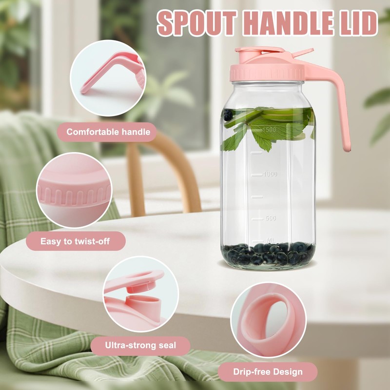 VCVOIP 64 oz Glass Pitcher with Lid - 2 Quart Mason Jar Pitcher with Lid, Wide Mouth Airtight & Leakproof Glass Jar for Iced Tea, Juice, Breastmilk, Cold Brew, Sun Tea and Drinks