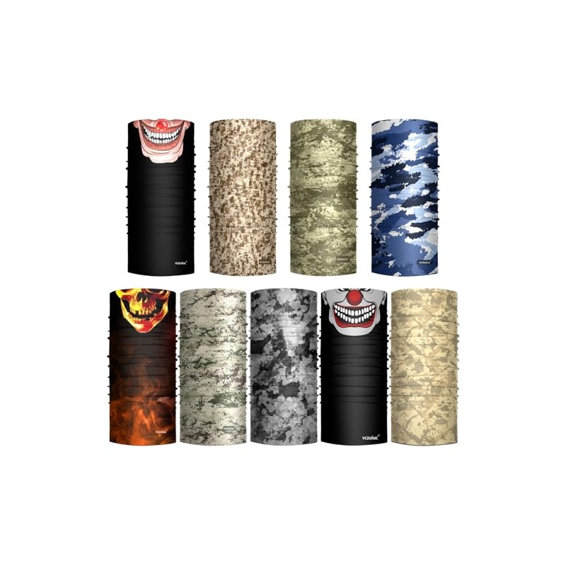 VCZUIUC Headwear Bandana Head Wrap Face Scarf Mask Neck Warmer Balaclava for Sports (Medium (Quick Dry), 9pcs: Camo-2)
