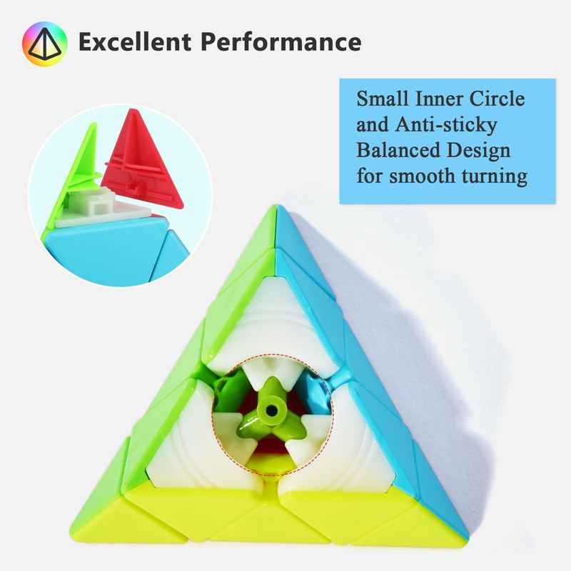 - Unique Design. The Vdealen sticker-free pyramid cube adopts an ergonomic design that combines practicality and aesthetics. The Pyramid Cube is made of original ABS material, and the use process will not cause harm to the human body. Whether you are a beginner or a professional player, it can meet your needs.