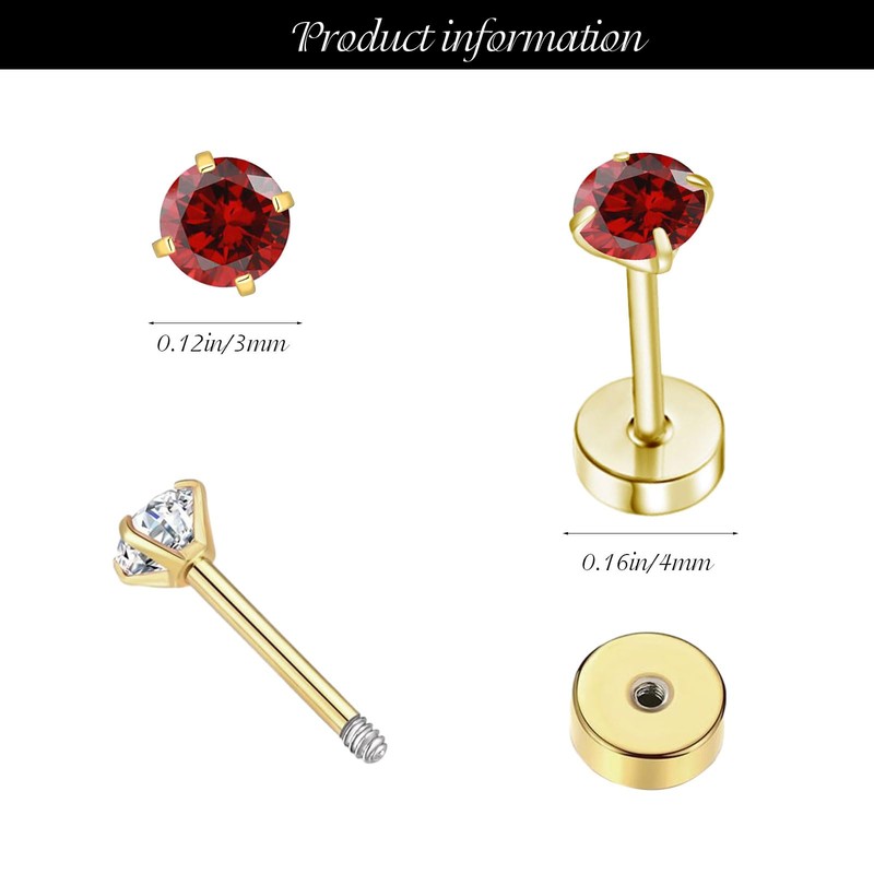 - 【Oct-Tourmaline Birthstone Earrings】Flatback cartilage stud screw earring with 3mm CZ Diamond Gemstone. Flattering and sparkling, just like the real diamond! You can choose your birthstone according to the birth month, there are 12 different colors of Gemstones.