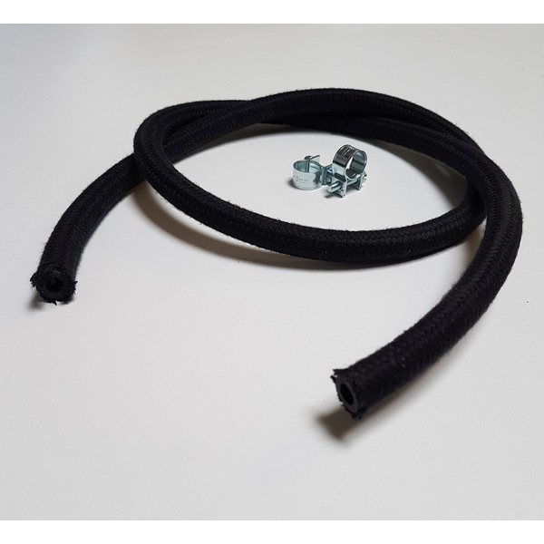 - Flexible fuel hose with textile braiding including 2 hose clamps per metre