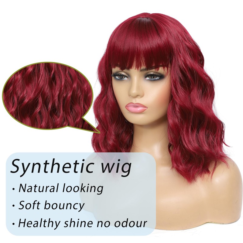 Veally Wine Red Short Wavy Bob Wigs Synthetic Wig,Similar to Real Human Hair, Natural and Elegant.