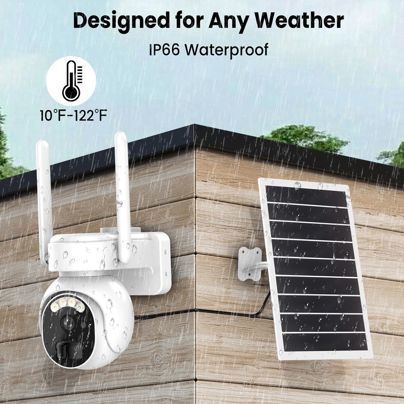 - Upgraded 8W Solar Outdoor Security Camera, NO Corded Electric Power NeededLooking for a outdoor security camera? This camera will be a great option. The 8W solar panel will really keep this camera always operating without corded electric power, which other competitors have only 6W solar panel. This product is definitely suitable for outdoor places without WiFi, such as farm, houses, warehouses, tents, RVs.(This cellular camera doesn't support Wi-Fi Connection)