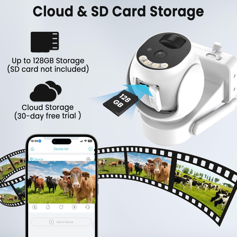 - Reliable & Secure Cloud StorageThe 4G LTE security camera supports both SD card storage (up to 128GB, not included) and secure cloud storage. We offer a 30-day trial of the cloud storage service, and after the trial period, you can choose to purchase an affordable cloud storage plan for continued peace of mind.