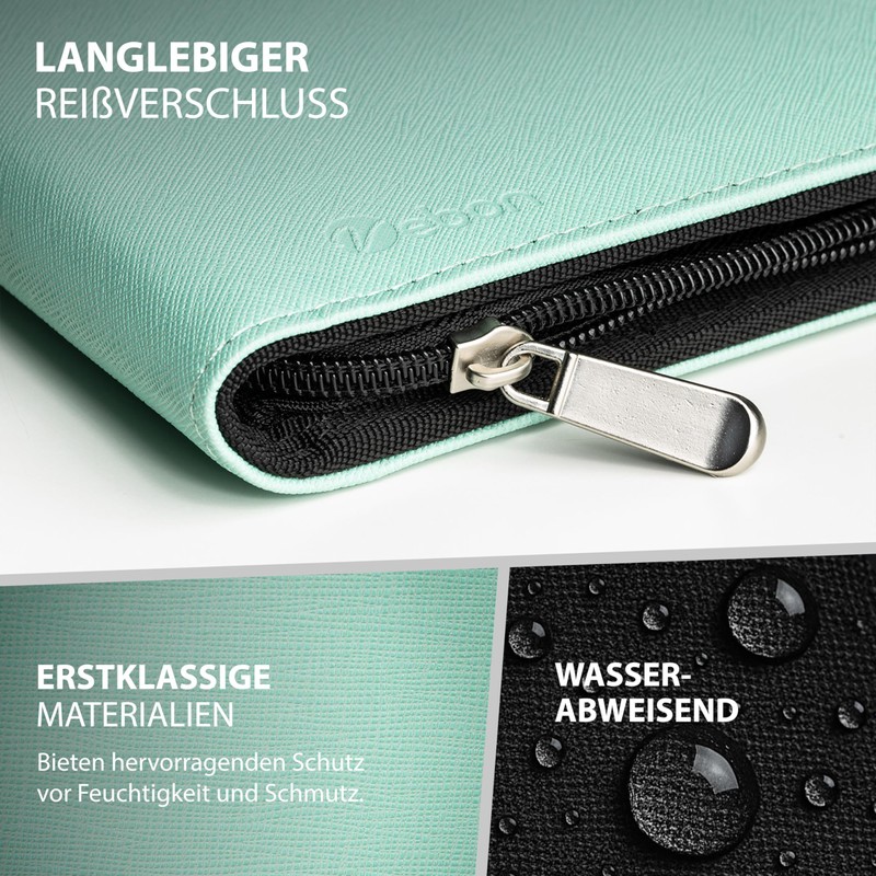 Vebon® New York A4 Large Writing Case, Vegan Leather, Zip + Clipboard, Conference Folder + Laptop Bag, Extra Storage Space, Turquoise