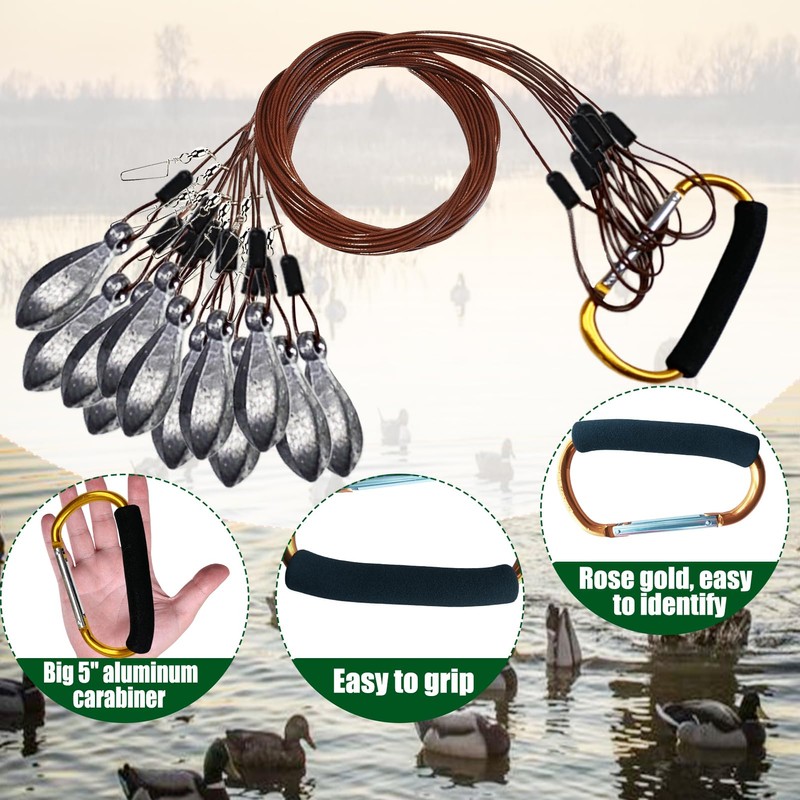 • 🦆 HEAVY DUTY ANTI-TANGLE RIGGING: Our decoy rigs adopts a sturdy single heavy-duty coated stainless steel cable as the duck decoy rig line, which has stronger load-bearing capacity, not easy to break, durable, ensuring your decoys are easy to carry, transport and store.