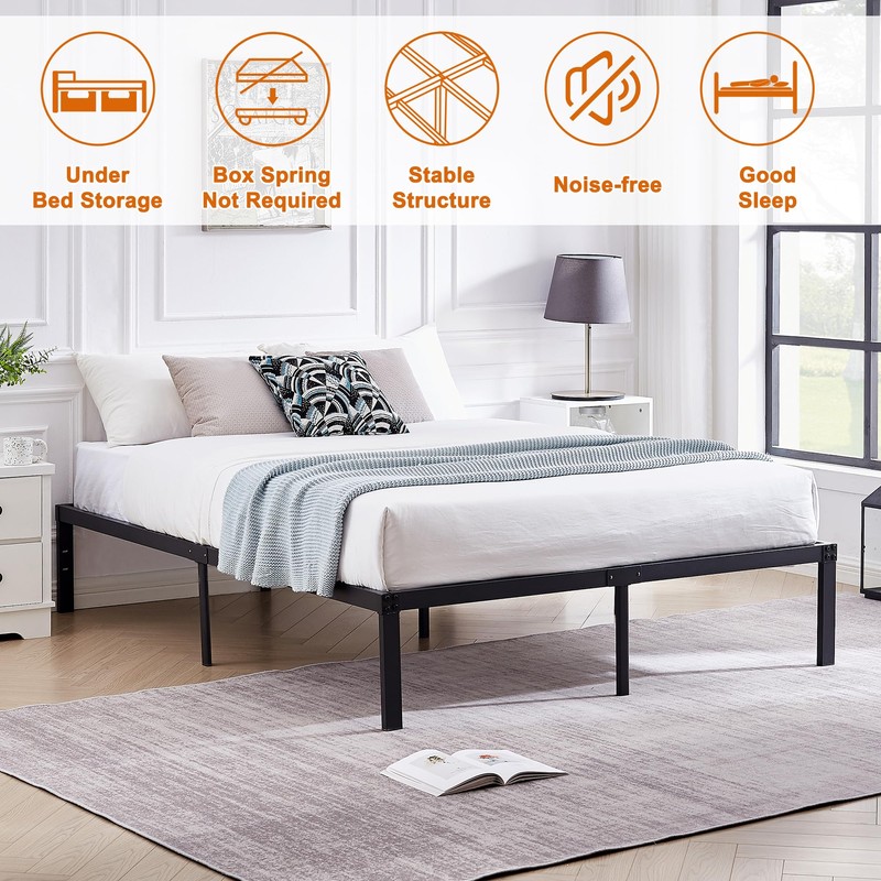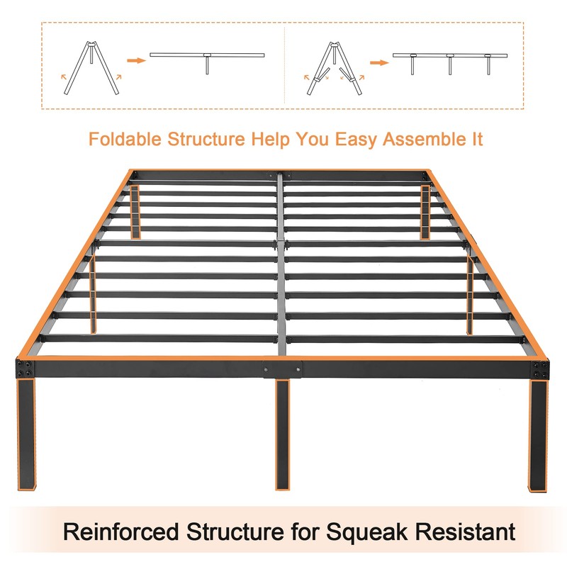 - 【Heavy Duty Support 】Sturdy full size metal bed frame with 9 sturdy legs structure will support a maximum weight up to 3000 lbs and provide you a good sleep time with no sagging, non-shake, no squeak and noise free.