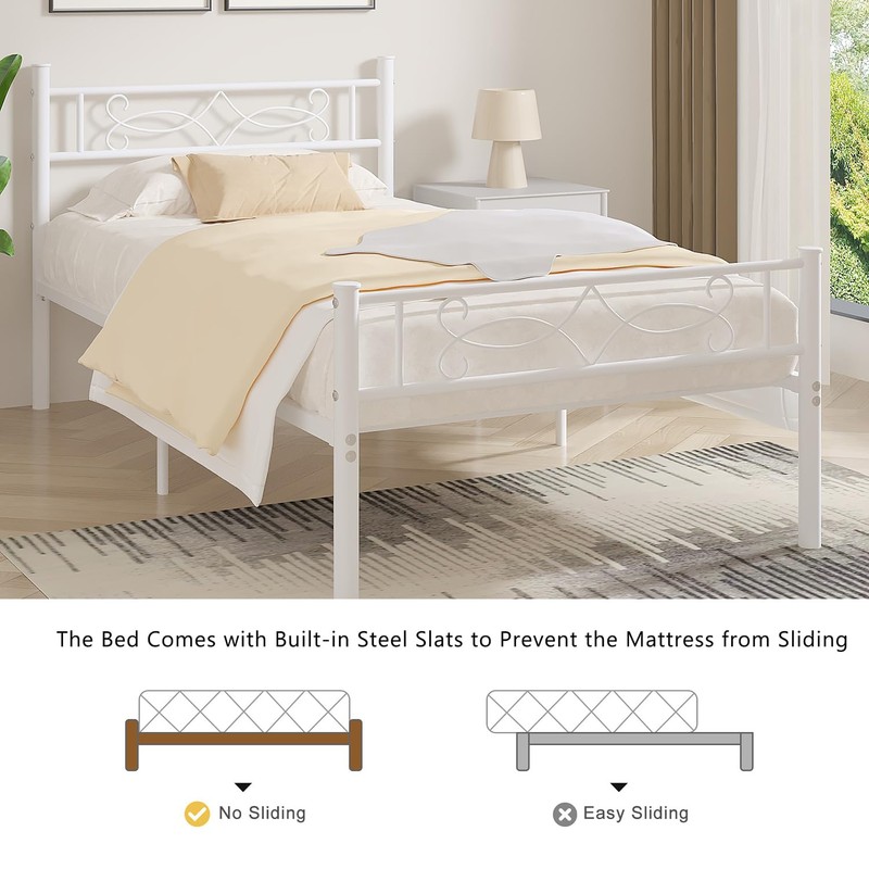 - 【Exclusive Headboard & Footboard】The metal bed frame features a headboard and footboard, providing extra protection for your body and helping to keep your bedspread and blanket in place.
