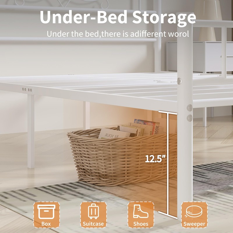 - 【Space Saving&Under Bed Storage】This Twin bed offers 12.6 inch of under-bed clearance, providing ample storage space for clothes, toys, and more. The bed frame is suitable for memory foam, latex, hybrid, or spring-type mattresse.