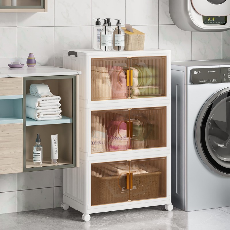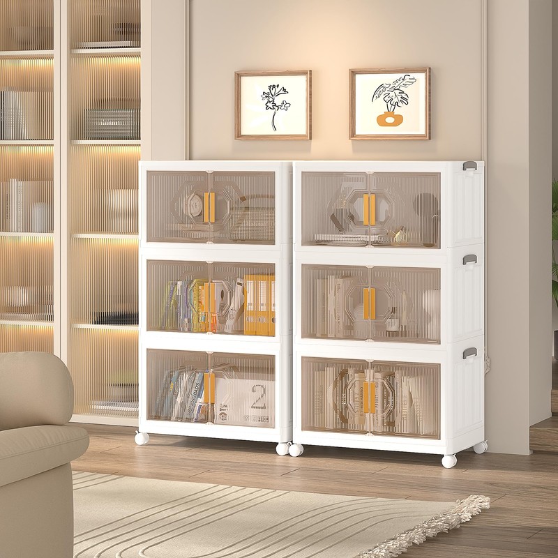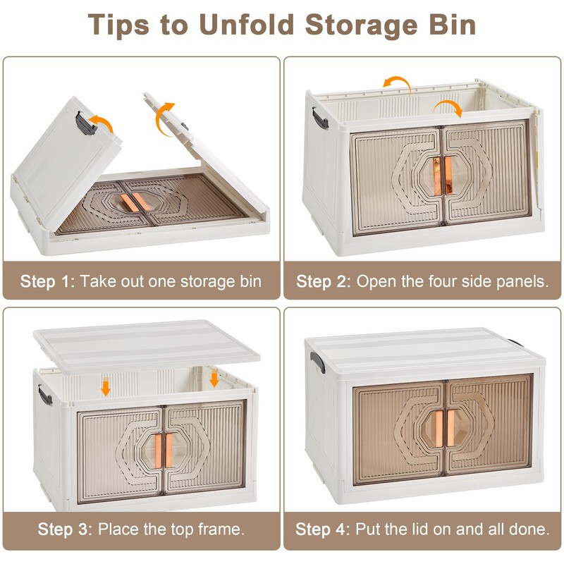 • 【Two Opening Methods】The wheeled folding storage cabinet can be opened in two ways—either through the top lid or the front door. The magnetic lock dual-opening doors, coupled with transparent windows, facilitates easy organization and access while preventing dust. The charming rectangular door of the foldable storage box adds a modern and stylish touch to your home decor.