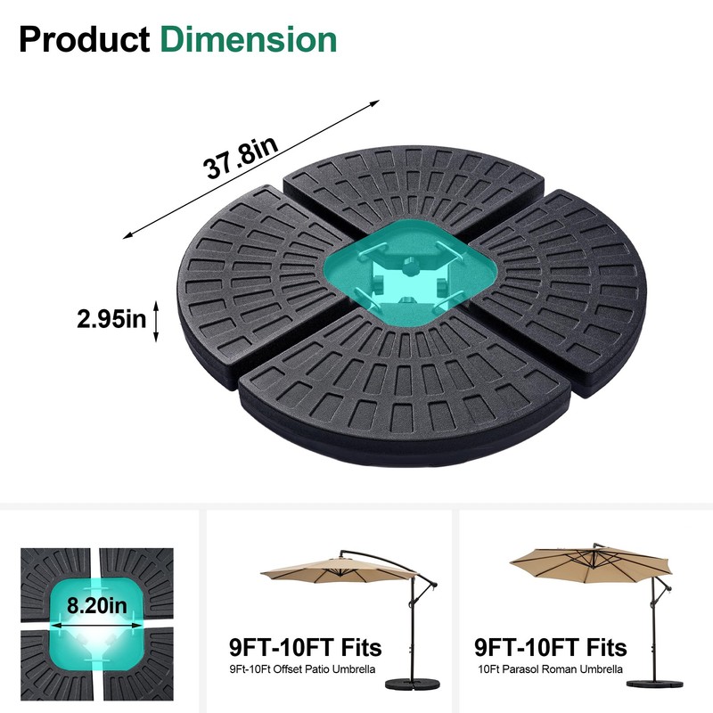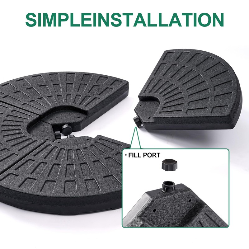 - Stability & Heavy: VECELO patio umbrella stands & bases are assembled with 4 interlocking base pieces secured with 4 connecting pins to supports the umbrella. Filling the umbrella base outdoor patio with dry sand, wet sand or water to enhance stability, preventing tipping.