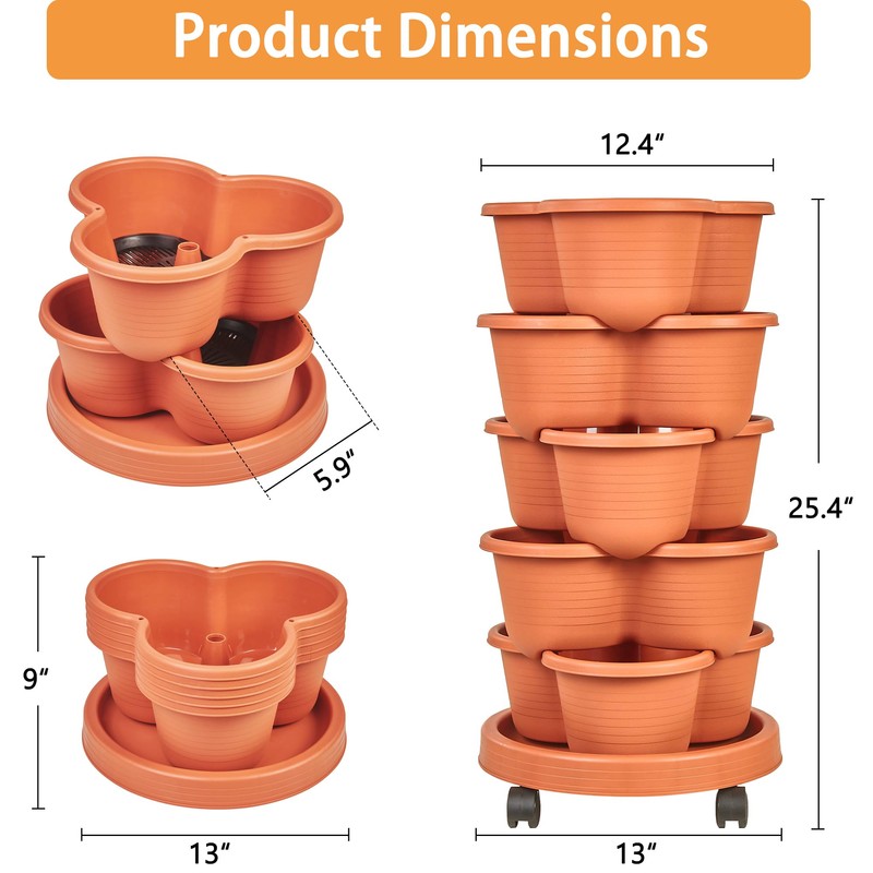 - Space-Saving : This strawberry planter maximizes your gardening space by stacking 5 layers to grow more plants in a compact area. The strawberry tower planter is ideal for patios, balconies, or indoor use.