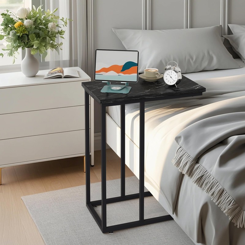 - [C-shaped Design End Table]The C-shaped end table is easy to slide into the underside of the couch, bed or chair, allowing you to conveniently use it without getting up. Meanwhile,the compact C-shaped design also makes it a perfect small end table for small spaces.