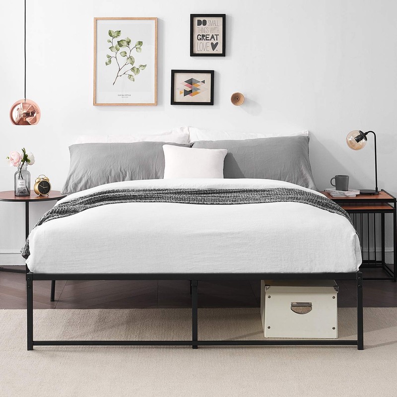 VECELO Metal Bed Frame Platform Premium Steel Solid Sturdy Metal Slat Support/No Box Spring Needed (Queen Bed Frame), Black