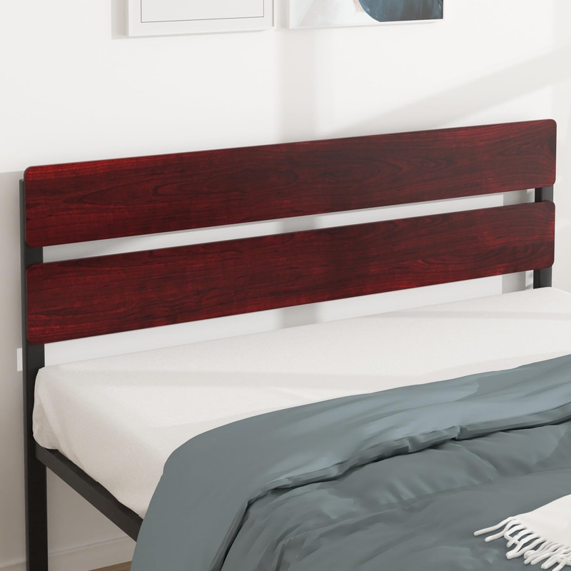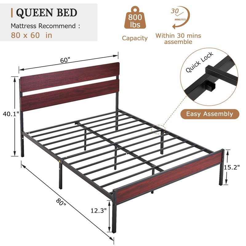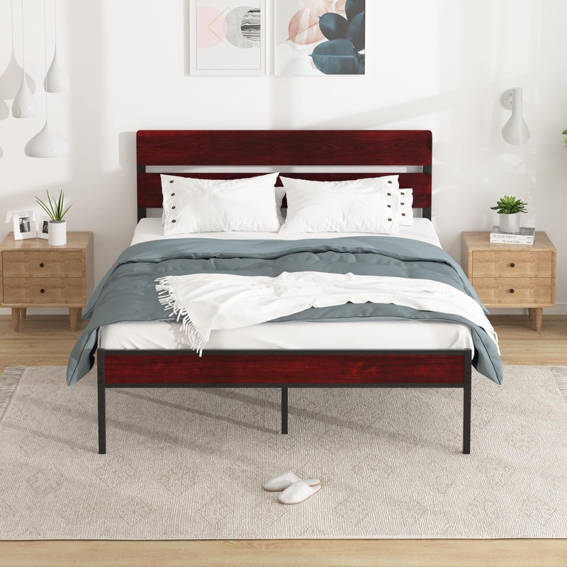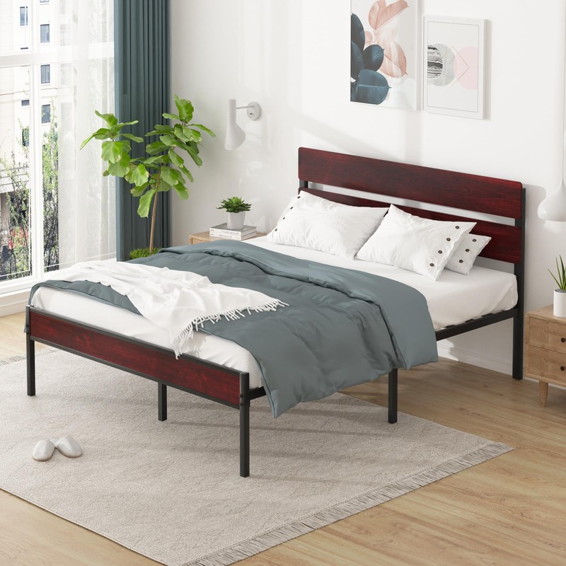 VECELO Metal Platform Queen Size Bed Frame with Wooden Headboard,Sturdy Steel...