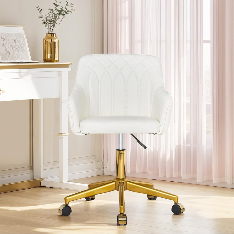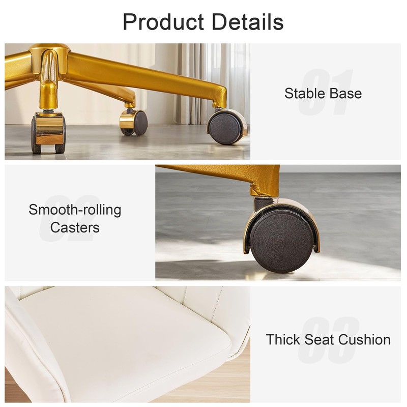 - Perfect for Vanity: This rolling vanity chair combines classic white seating with an elegant gold metal base, blending beauty and style. The vanity chair with wheels is an ideal addition to your makeup room or bedroom decor, perfect for girls and ladies alike.