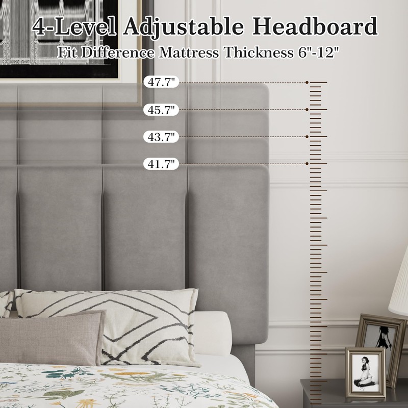 - [Versatile Headboard Design] - This queen bed frame offers 4-position height adjustment ranging from 41" to 47", accommodating a wide variety of mattress thicknesses and personal preferences.