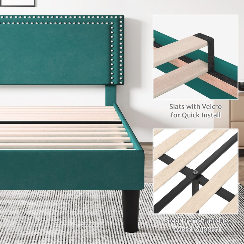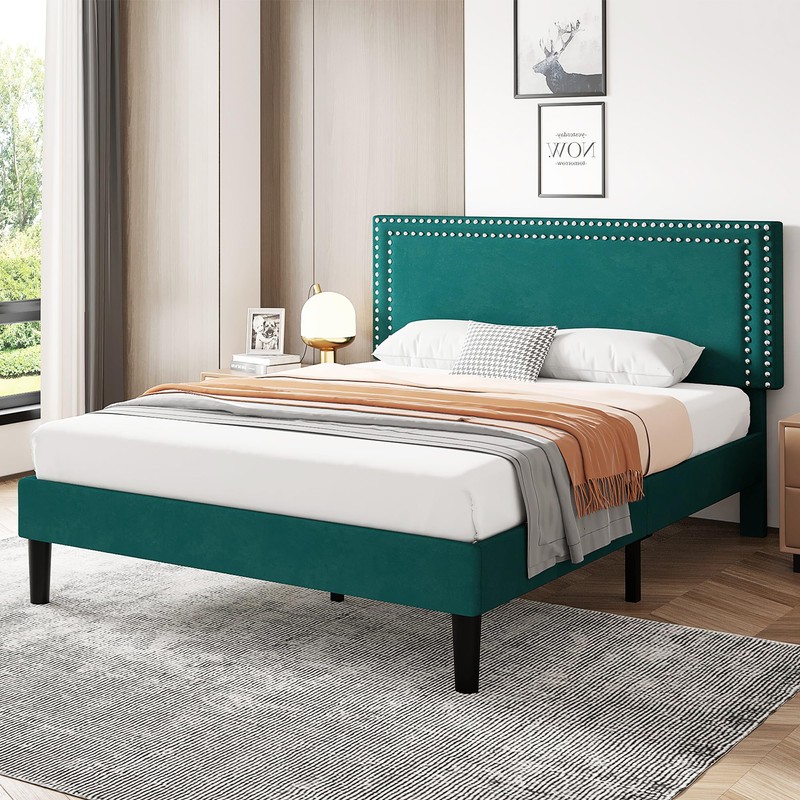 - Elegant Velvet Upholstery with Nailhead Trim: This queen bed frame adds a touch of luxury to your bedroom with soft velvet upholstery and chic silver nailhead trim, making it a stylish centerpiece for any decor.