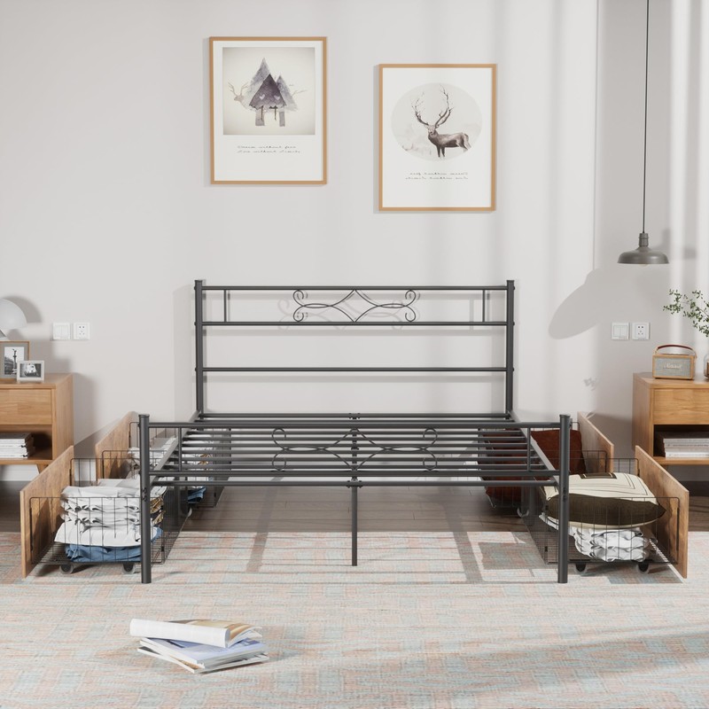 - 【 4 Drawers 】Queen bed frame with 4 Drawers perfectly for storage space ,very friendly to small spaces.Rollers at the bottom, easy to pull out and push back in,Storing items in under-bed drawers can prevent clutter in the room, making it look more organized and tidy.
