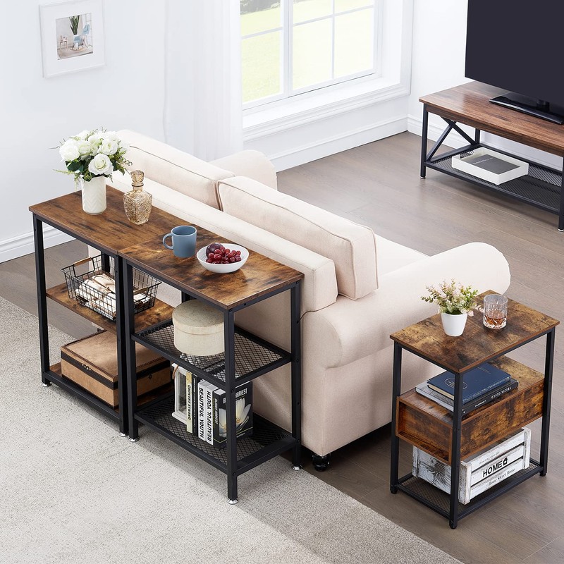 - 【Industrial Design】The VECELO minimalist industrial end side table, coupled with rustic brown tones and high-grade black color,they are visually pleasing and beautifully elegant.