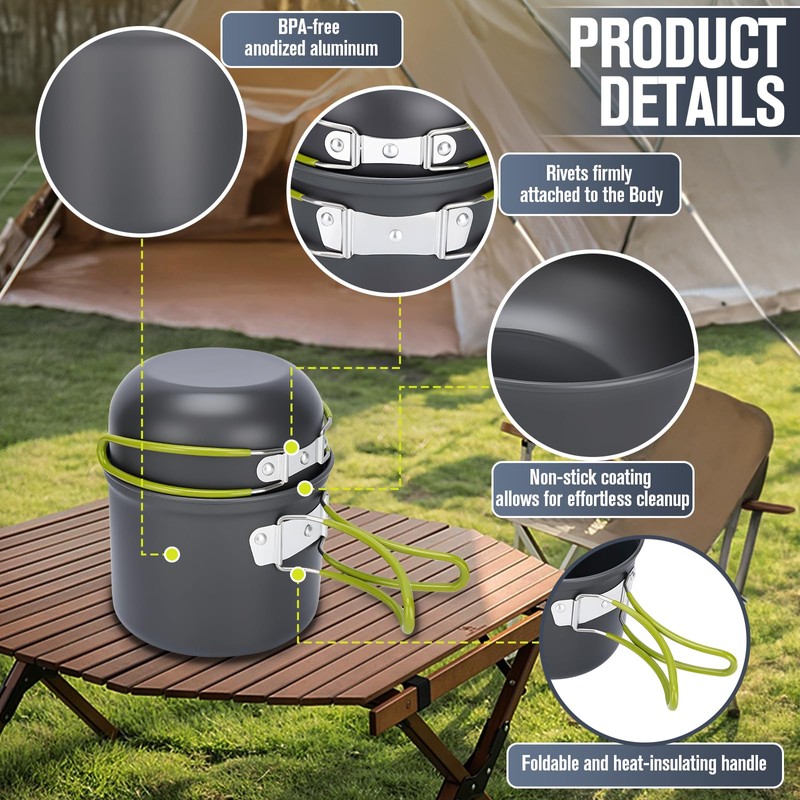 - Gear up for your next outdoor adventure with our camping cookware set, the all-in-one solution for cooking delicious meals in the great outdoors.