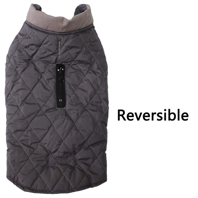 - Reversible,Made of 3 Layers Material.1:Dark gray+Light gray stitching design,simple fashion; 2:Soft waterproof fabric,lightweight and comfortable; 3:(Middle polyester filler layer for warmth),keep your puppy warm in cold winter;