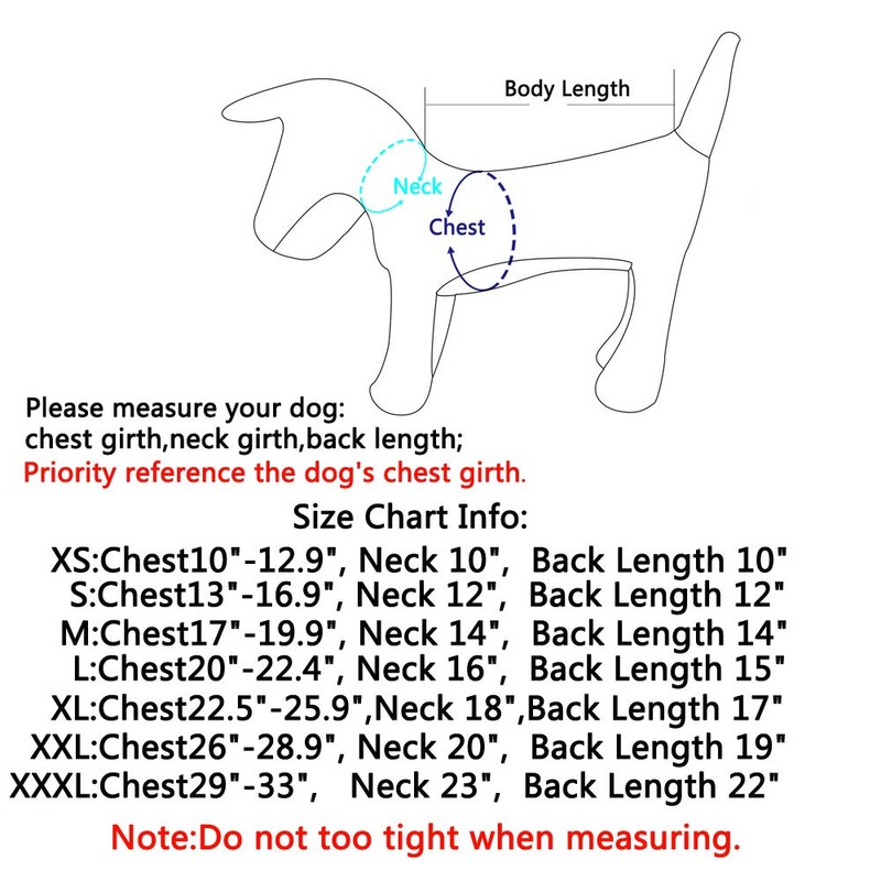 - Size S,Best for small dogs,S:Chest 13"-16.8",Neck 12",Back Length 12";Because different dog clothes is different size,Please must measure your dog,reference size chart,priority to reference chest girth.