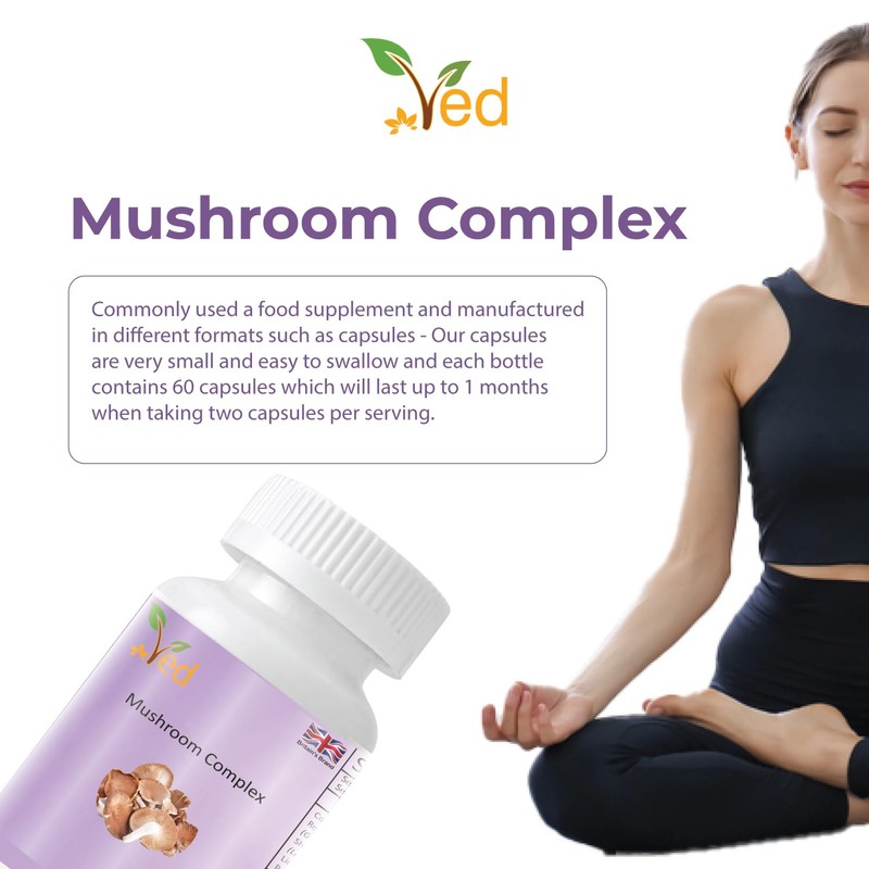 Ved Mushroom Supplement – 1330mg per Serving,60 Capsules,4 Mushrooms - Lions Mane, Reishi, Cordyceps, Shiitake,(30 Days Supply)