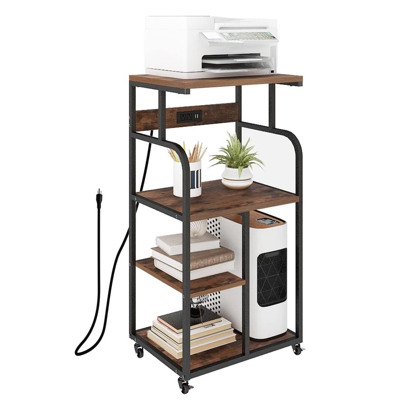 - 【Upgraded Extensive Design】Our tall printer stand includes built-in USB port plugs power outlet(2 charging port & 2 power sockets),easy for your printer stand, laptop, computer or smartphone charging without additional outlets, which provides convenience while working. Also versatile as a kitchen trolley cart, bar cart, file cabinet, side end table, utility carts, etc.