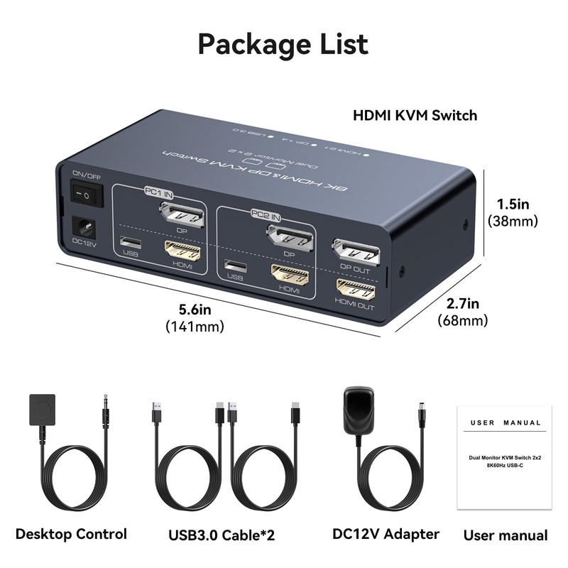 | Size: | 8K60Hz DP+HDMI 2 PC 2 Monitore |