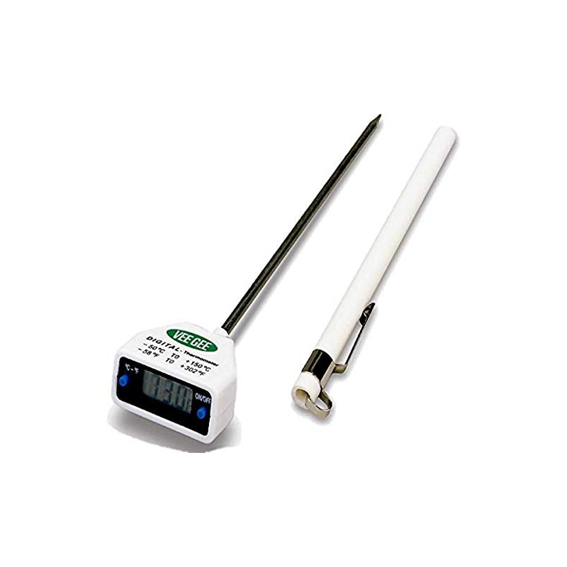 Vee Gee 83110-12 Digital Thermometer, Ultra-High Accuracy, -10 to 100 Degree C/14 to 212 Degree F, 1.4" x 0.7" Face, 5" Stem, 0.1 Degree C/0.1 Degree F Resolution