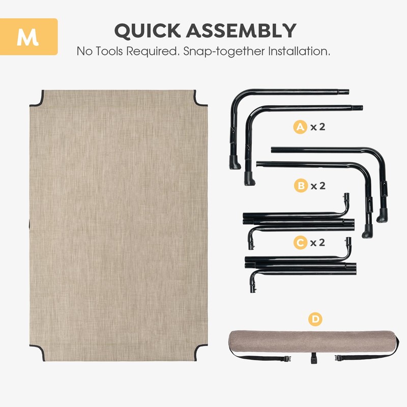 - Snap-Together Installation. Easy to Assemble. No screws and wrenches needed. Best idea as dog hammock bed and training platform. Lightweight and portable. Perfect for indoor, outdoor, picnic, camping, training… Quality sleep on the go!
