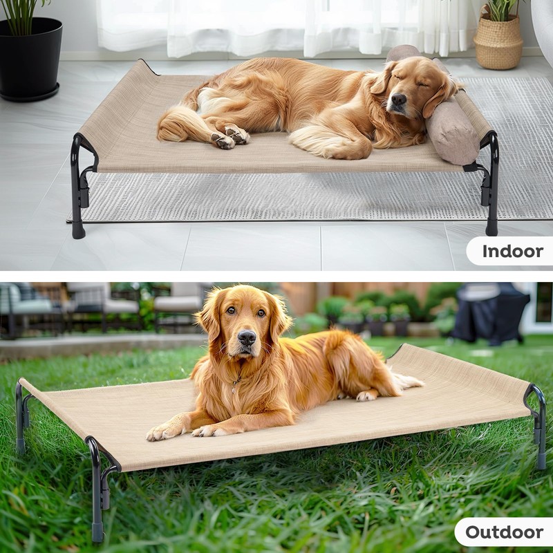 - Stay Hygienic and Cool Ever: Teslin breathable mesh helps keep your dog cool, especially during the hot summer months. The elevated dog cot design allows air circulation and prevents the accumulation of moisture, providing a dry sleeping environment.