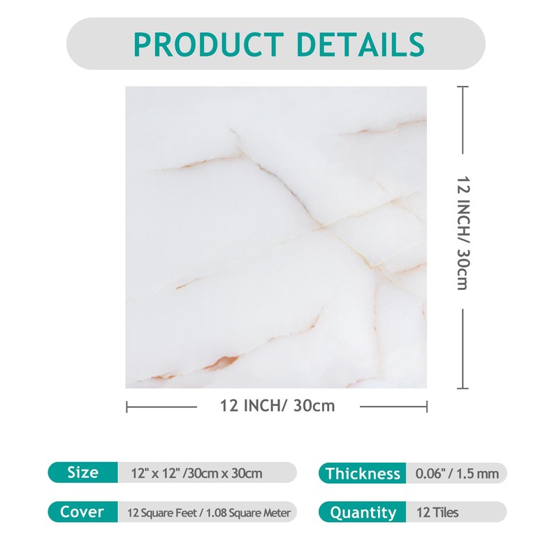 - ๐๐ซ๐จ๐๐ฎ๐๐ญ ๐๐๐ญ๐๐ข๐ฅ๐ฌ: Peel and stick floor tile, pink and white marble floor tiles, textured finish, made of high quality vinyl, durable, 12''x12'' vinyl floor tiles, 1.8mm thick, 12 tiles each box, covers 12 Sq Ft,