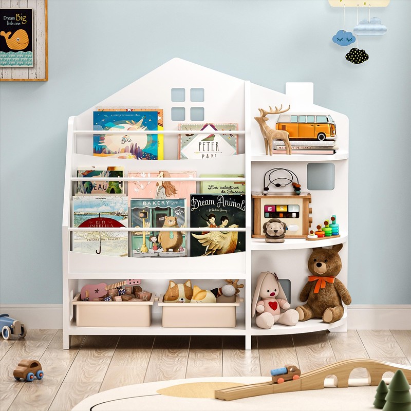 - Kid-Friendly Design: The unique house shape brings cuteness appeal to the playroom, living room, classroom, or nursery. The low center of gravity prevents the bookshelf from tipping over, plus, the rounded corners enhance overall safety , making it safe for kids to use.