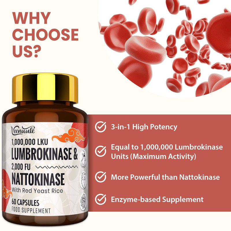 - NATURAL CIRCULATION SUPPORT - Lumbrokinase, known for its potent fibrinolytic activity, effectively breaks down fibrin in the blood. Veenuule's lumbrokinase enzymes, derived from a natural source, are combined with nattokinase to promote a healthy circulatory system.