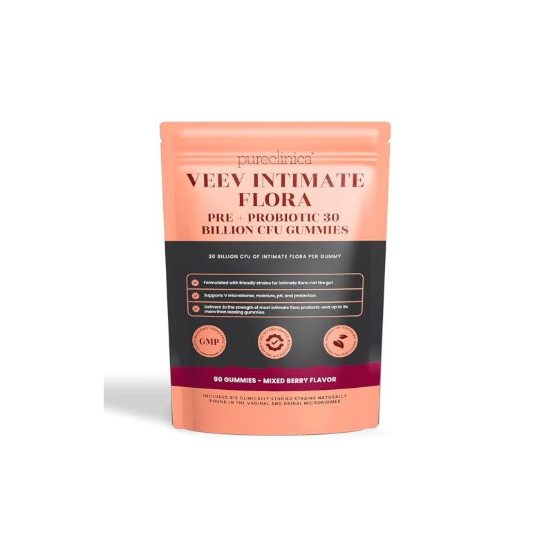 Veev Intimate Flora - Probiotic + Prebiotic Gummies - 90 Pieces (3 Month Supply) 30 Billion CFU - With Cranberry, D-Mannose and Berberine - Support for Vaginal pH & Urinary Tract Berberine