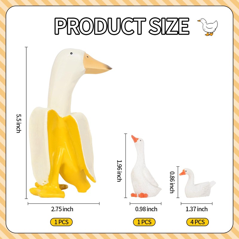 - 【Cute Duck Statue】 You will get 1 big banana Duck(5.7"x3.54"x3.14") and 5 small ducks(1.8"x1") in normal shape.