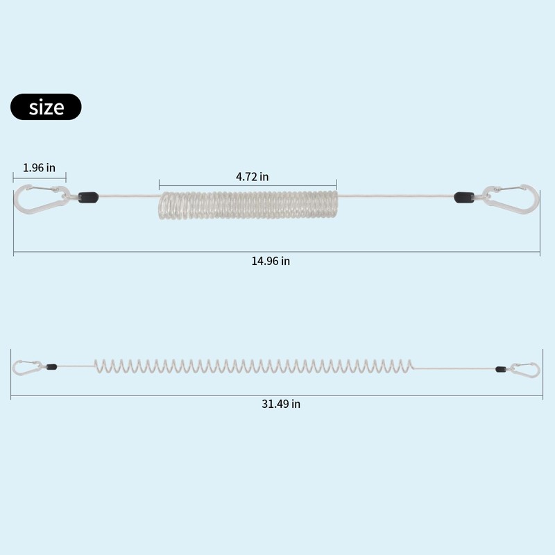 - Quality and Retractable: These fishing lanyard is built-in 7*7 strands steel wire, the tensile strength is 50lb. Good spring tension, but not excessive, stretches from 20” to 79”, flexible and no interference