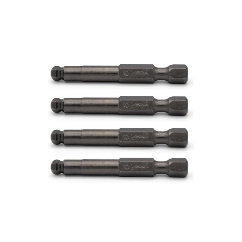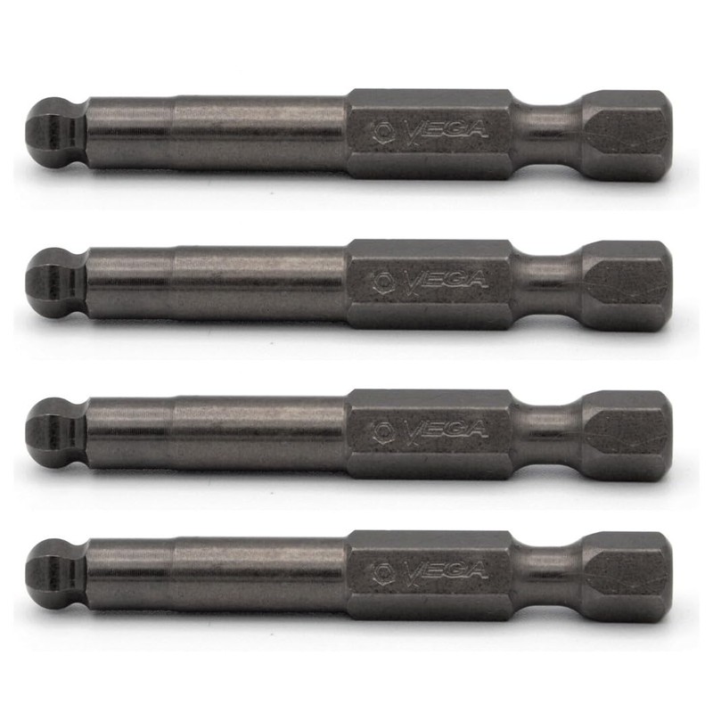 VEGA Ball End Hex 3/32"m Bit Set - Professional Grade S2 Steel SAE Allen Wrench 2" Drill Bit. 1/4" Quick Release Hex Shank for Impact Drivers. (4PC)