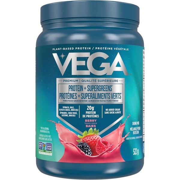 Vega Protein & Greens – Berry, 18 Servings. Plant-Based, Vegan, Non-GMO Pea Protein with Veggies.